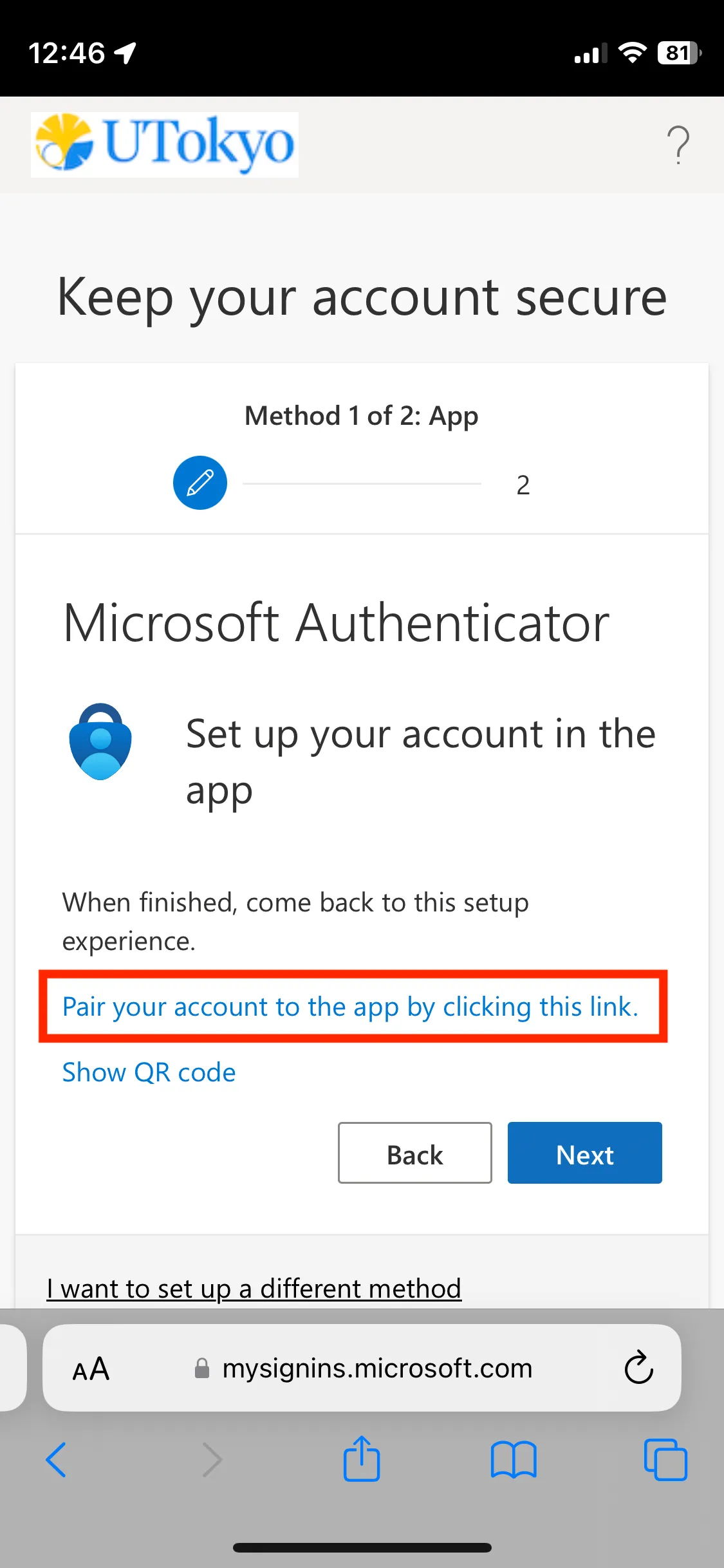 2. Sign in with your UTokyo Account if prompted.